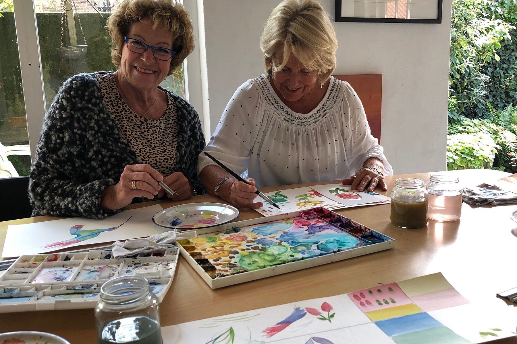 Een vriendinnenclub over een introductiecursus aquarelleren.