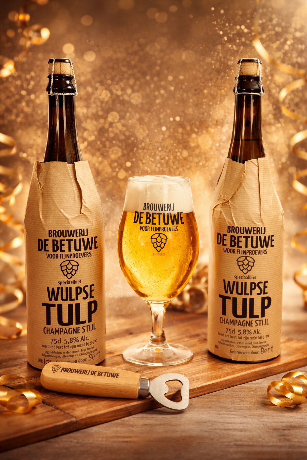 De Wulpse Tulp op Champagnestijl is zo’n verrassing. Een creatie van onze lokale meesterbrouwer Bert van de Pol en zijn Mathilde Moree, die met hun eigen stijl en creatieve vormgeving telkens weer iets unieks neerzetten. Dit speciaalbier is vergist met gisten uit de Champagne, wat zorgt voor een verfijnd en sprankelend karakter. Doordrinkbaar, plezierig en spannend, met een elegante frisheid die perfect past bij het Paasweekend.